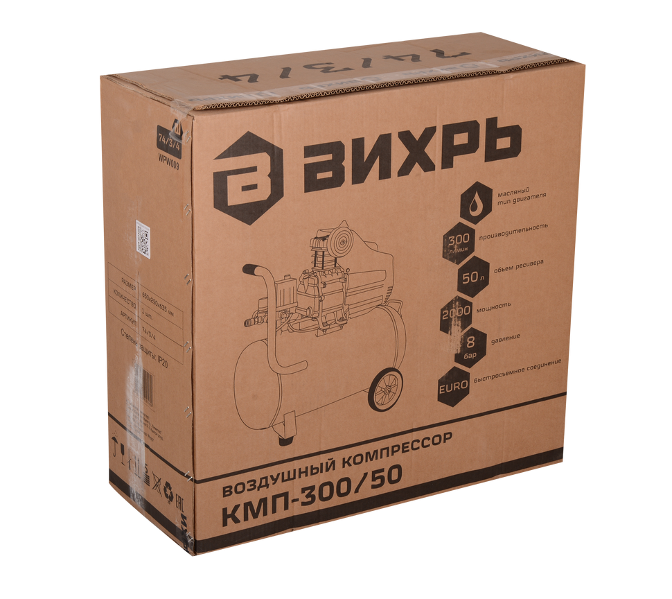 Масляный компрессор Вихрь КМП-300/50 отличается надежностью и длительным сроком службы. Используется в связке с дрелью, шлифовальной машиной и другим пневмоинструментом. Применяется для накачивания шин. Частицы масла в сжатом воздухе обеспечивают смазку вращающихся частей устройств. Для эффективной бесперебойной работы требуется периодическая замена фильтров и контроль уровня масла.