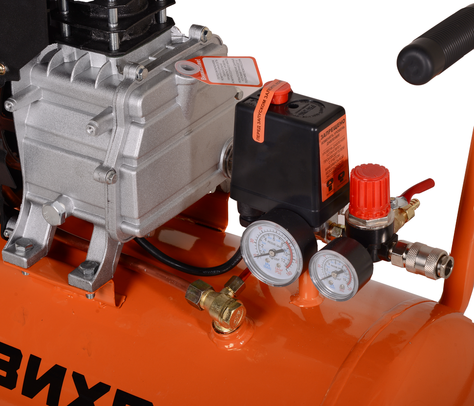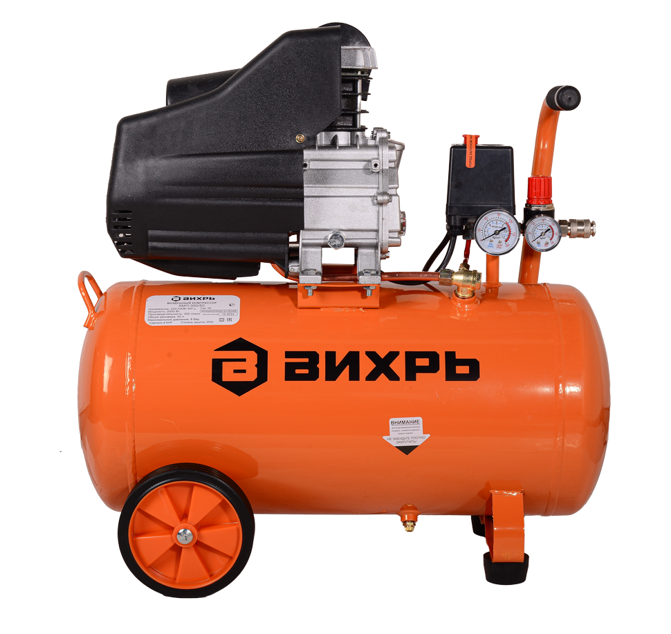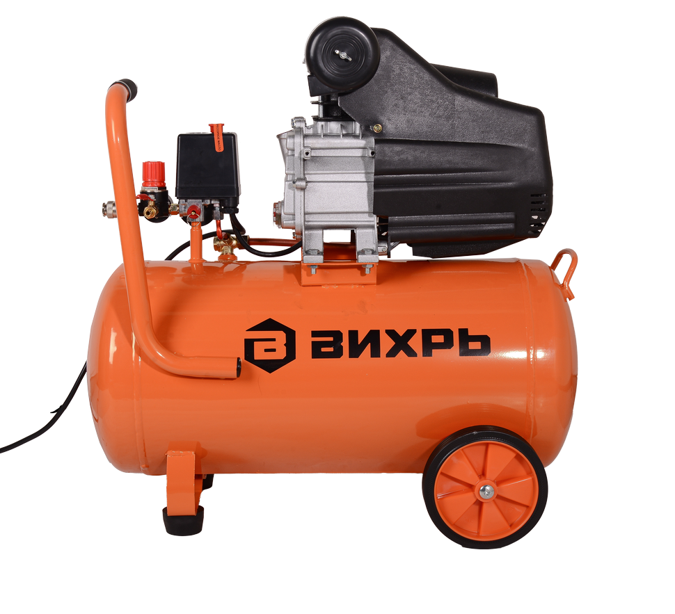 Поршневой компрессор Вихрь КМП-300/50 с двигателем мощностью 2000 Вт применяется для подачи сжатого воздуха в различное пневматическое оборудование в процессе строительства и ремонтных работ. Прямой привод экономит потребление электроэнергии, которая необходима для сжатия воздуха, сохраняет минимальный уровень шума и вибрации. Производительность на выходе составляет 300 л/мин, что позволяет одновременно подключать несколько инструментов. Ресивер объемом 50 л накапливает избыточный сжатый воздух, уменьшает перепады давления в системе и пиковые нагрузки, охлаждает воздух, отделяет конденсат.