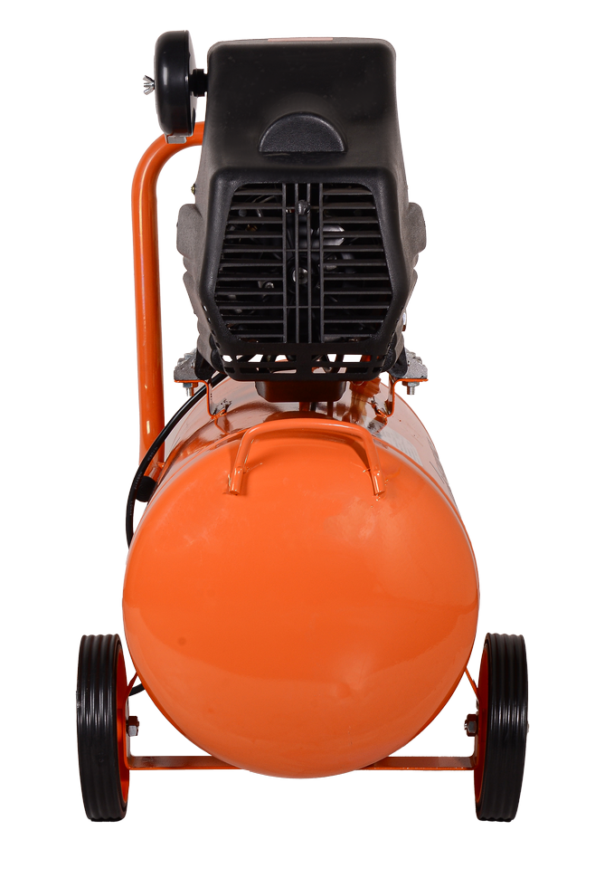 Рабочее давление составляет 8 Бар. Манометры, установленные на корпусе, обеспечивают контроль его уровня на входе и выходе. Предохранительный клапан защищает от избыточного давления. Функция его регулировки позволяет подстраиваться под нужды каждого инструмента. Защита двигателя от перегрева сохраняет работоспособность устройства надолго. Колеса и тяговая ручка позволяют транспортировать компрессор на небольшие расстояния. Защитный чехол на приводе обеспечивает безопасность во время работы.