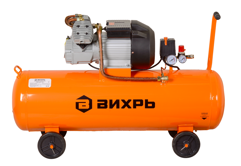 Компрессор Вихрь КМП-400/100 с прямым типом передачи подходит для интенсивной эксплуатации в быту при проведении строительных работ, в мастерской или в гараже. Поршневой электродвигатель с двумя цилиндрами мощностью 2500 Вт способен к долгой работе без перегрева и выдает до 400 л сжатого воздуха в минуту. Объема бака ресивера в 100 л хватит для всех необходимых задач. Для их подключения используется разъем EURO-рапид.