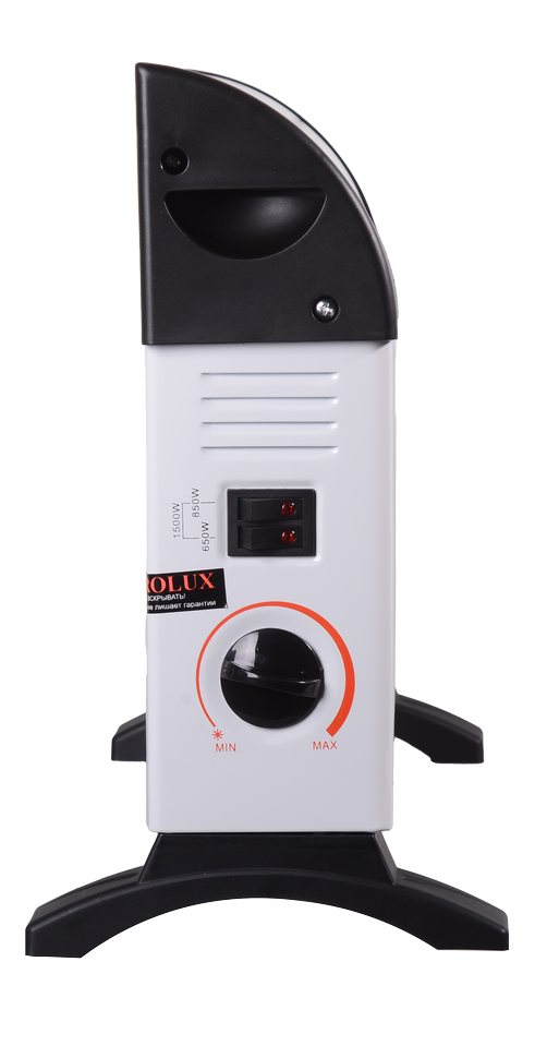 Электроконвектор данной модели отличается малыми габаритами, небольшим весом и продуманной системой управления. Прибор работает в 3-х режимах: 650, 850 и 1500 Вт. Установка оптимальной мощности термостата осуществляется с помощью двух переключателей. Плавно вращающаяся ручка позволяет выбрать максимально комфортную температуру. Обогрев помещения происходит по принципу естественной конвекции воздуха без применения дополнительных вентиляторов. Нагревательный элемент стич раскаляется до заданной температуры, теплый воздух вытесняется через верхние отверстия решетки и устремляется вверх, заставляя холодные потоки опускаться вниз и подвергаться нагреву. Корпус установлен на высокие, устойчивые опоры, благодаря чему конвектор можно размещать в любом месте помещения. Устройство весит 2,19 кг, что делает возможной его фиксацию на стене, перегородке из любого материала.