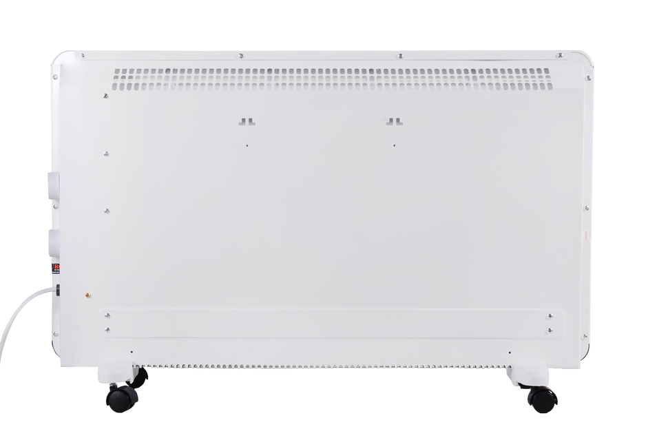 Электроконвектор работает от сети и оснащен термозащитой от перегрева. Мощность можно менять в зависимости от выбранного режима эксплуатации. С помощью вращающегося переключателя можно установить требуемую мощность, что позволит сократить потребление электроэнергии, изменить скорость обогрева помещения. Выбор температуры производится путем плавного вращения верхней ручки. Принцип работы конвекторного радиатора базируется на смешивании холодных и теплых потоков воздуха. Оптимальным решением для обеспечения качественной конвекции считается установка обогревательного прибора на пол. Небольшой вес прибора (4,3 кг) позволяет монтировать его и на стене. Опоры и крепеж для стены входят в комплектацию электроконвектора.