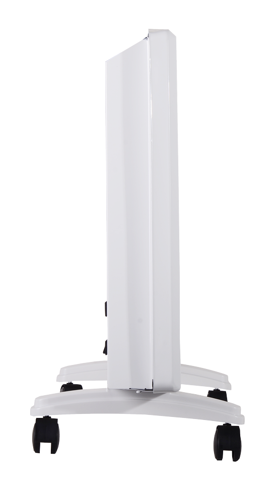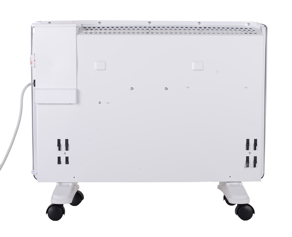 Электроконвектор работает от однофазной сети. Вес 4,79 кг и компактные габариты обеспечивают возможность напольной и настенной установки. Для монтажа на стену предусмотрены крепления. Помимо стационарных опор, в комплект входят колеса для удобства перемещения по горизонтальной поверхности. Прибор запоминает последнюю температуру термостата и режим работы перед отключением. Класс защиты IP24 позволяет использовать его в помещениях с повышенной влажностью.