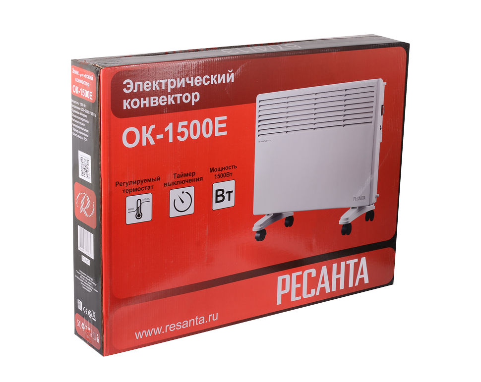 Преимуществом модели Ресанта ОК-1500Е является электронное управление. В случае перегрева встроенный термопредохранитель отключит прибор. Благодаря электронному термостату конвектор позволяет точно настраивать температуру. Показатели отображаются на LED-дисплее.