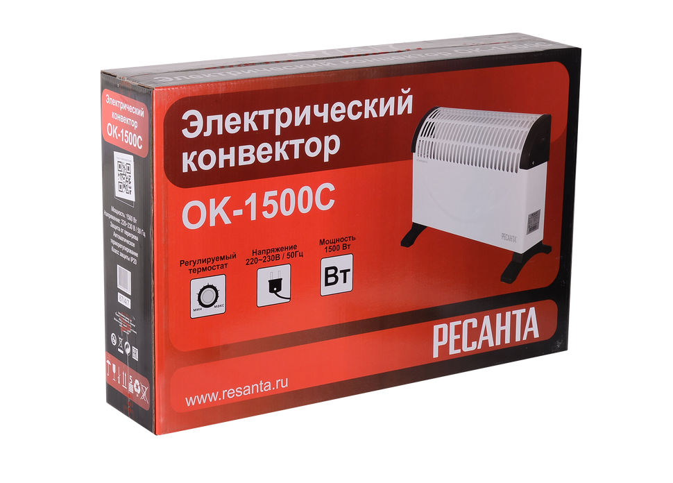 Электроконвектор Ресанта ОК-1500С имеет эргономичный дизайн. Отличается бесшумной работой. Удобные углубления на корпусе, малый вес прибора 1,7 кг и компактные габариты облегчают транспортировку. Стационарные пластиковые опоры обеспечивают устойчивость на горизонтальной поверхности. Благодаря универсальному белому цвету корпуса конвектор выглядит лаконично в интерьере. Индикатор включения позволяет контролировать работу устройства.