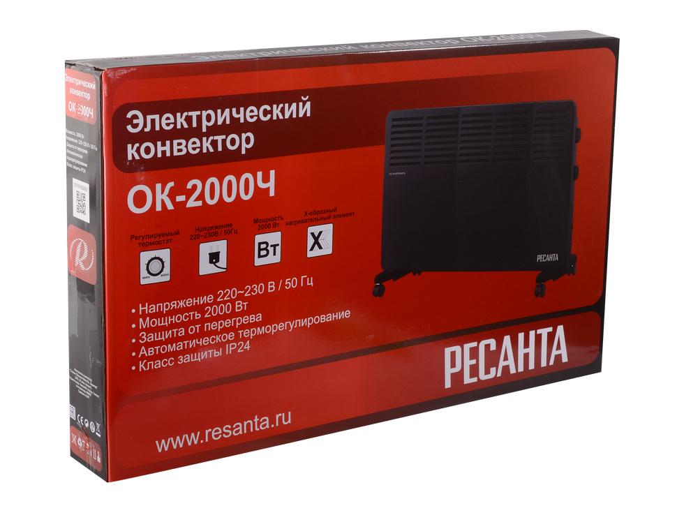 Конвектор Ресанта ОК-2000Ч по праву считается экономичным и эффективным отопительным прибором. Он способен быстро нагреть воздух в большом помещении, не затратив при этом много электрической энергии благодаря эффекту конвекции.