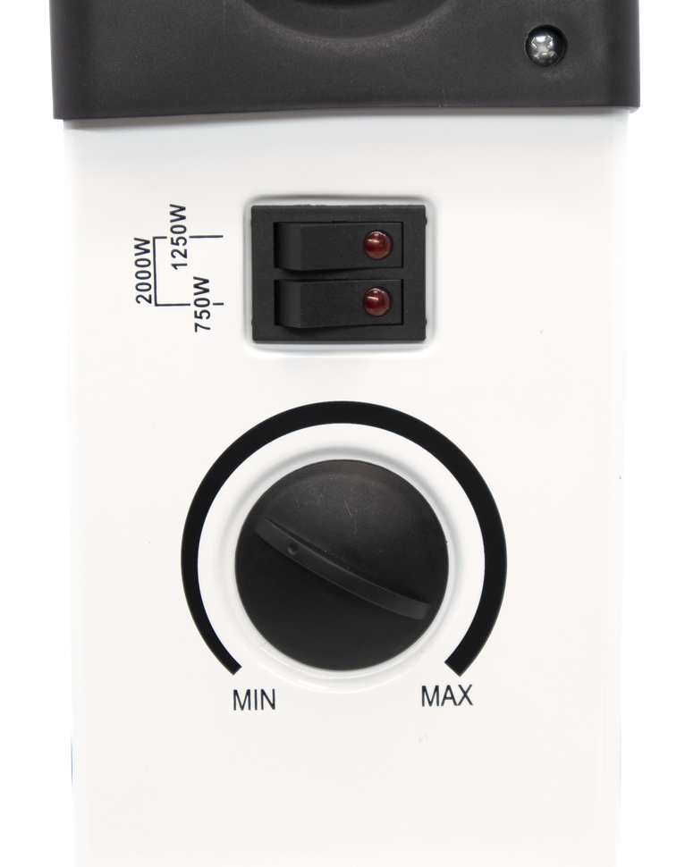 В модель РЕСАНТА ОК-20С устанавливается стич-нагреватель, который работает в 3 режимах мощности: 750, 1250 или 2000 Вт. Кнопки выбора режима расположены слева на панели управления. Световые индикаторы подскажут, какой уровень нагрева выбран. Крутящаяся ручка термостата обеспечивает плавную и точную настройку температуры. Термодатчик не только автоматически поддерживает температуру, но и обесточивает прибор в случае перегрева нагревательного элемента.