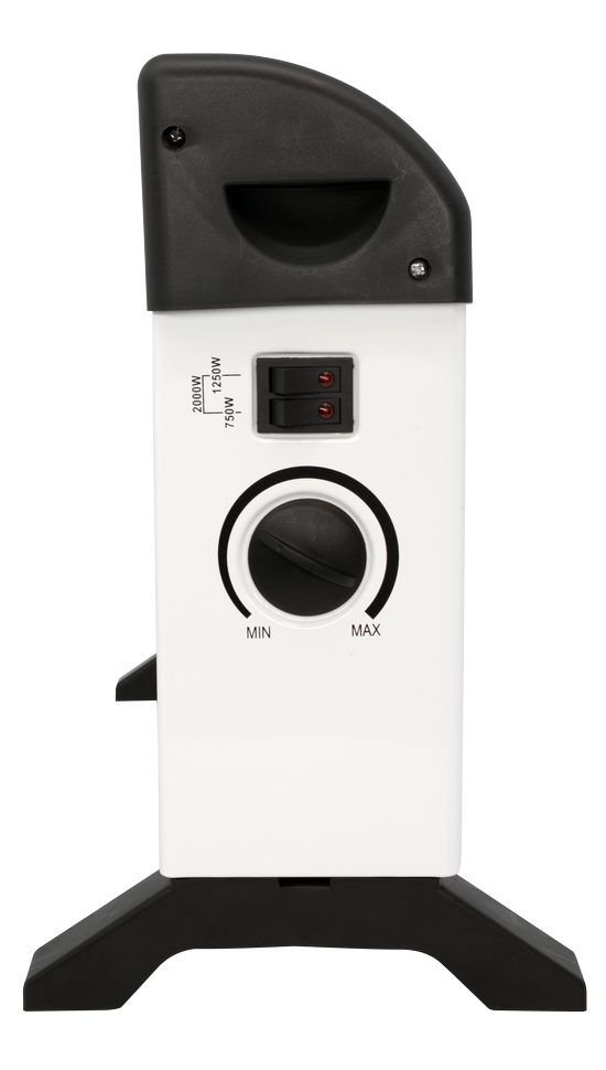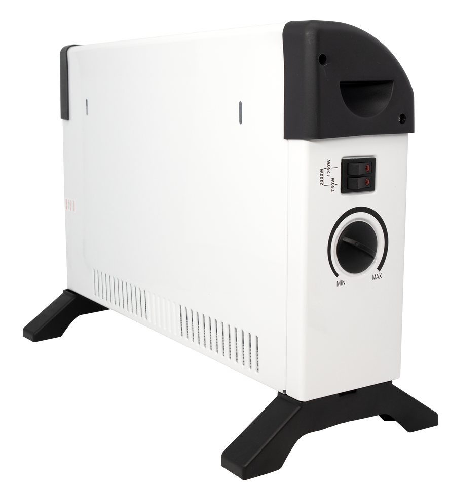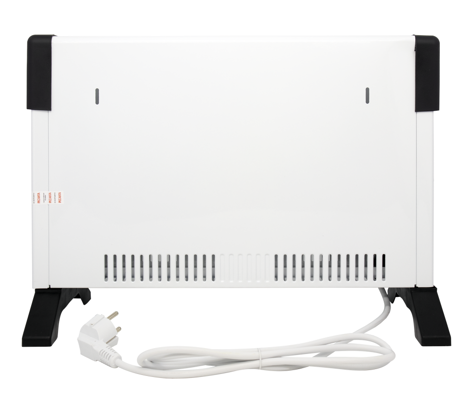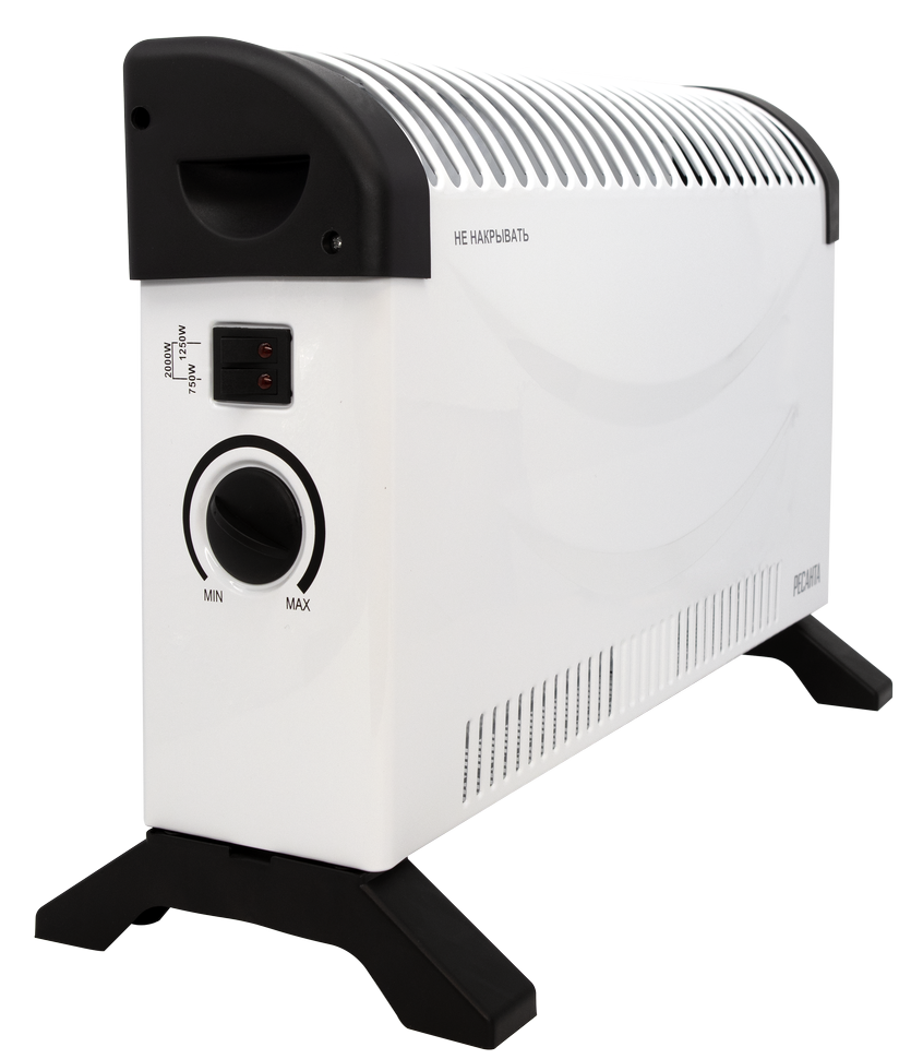 Конвектор запитывается от бытовой электросети 220 В. Стич-нагреватель быстро прогревается до заданной температуры и начинает отдавать тепло. Горячий воздух выходит через верхние вентиляционные отверстия, снизу поступает холодный воздух из комнаты. За счет конвекции электроконвектор работает бесшумно и безопасен при случайном касании. Снаружи его корпус не нагревается выше 50 - 60°C.