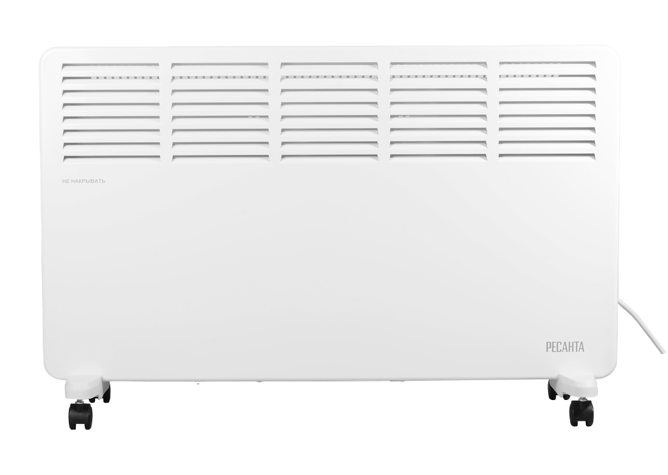 Электроконвектор работает бесшумно, перенос тепла с нагревательного элемента в помещение осуществляется за счет конвекции. Холодный воздух через нижние заборные решетки попадает на стич-элемент, под действием нагрева расширяется и поднимается вверх. Корпус обогревателя остается комфортной температуры и не обжигает при случайном касании.