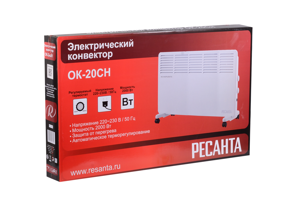 Электроконвектор РЕСАНТА ОК-20СН подходит для обогрева жилых комнат и офисов площадью 25 кв.м. Игольчатый нагревательный элемент быстро достигает заданной температуры и начинает излучать мягкое сухое тепло. В модели РЕСАНТА ОК-20СН предусмотрены крепления для настенного монтажа. Съемные колесики облегчают перемещение конвектора между комнатами.