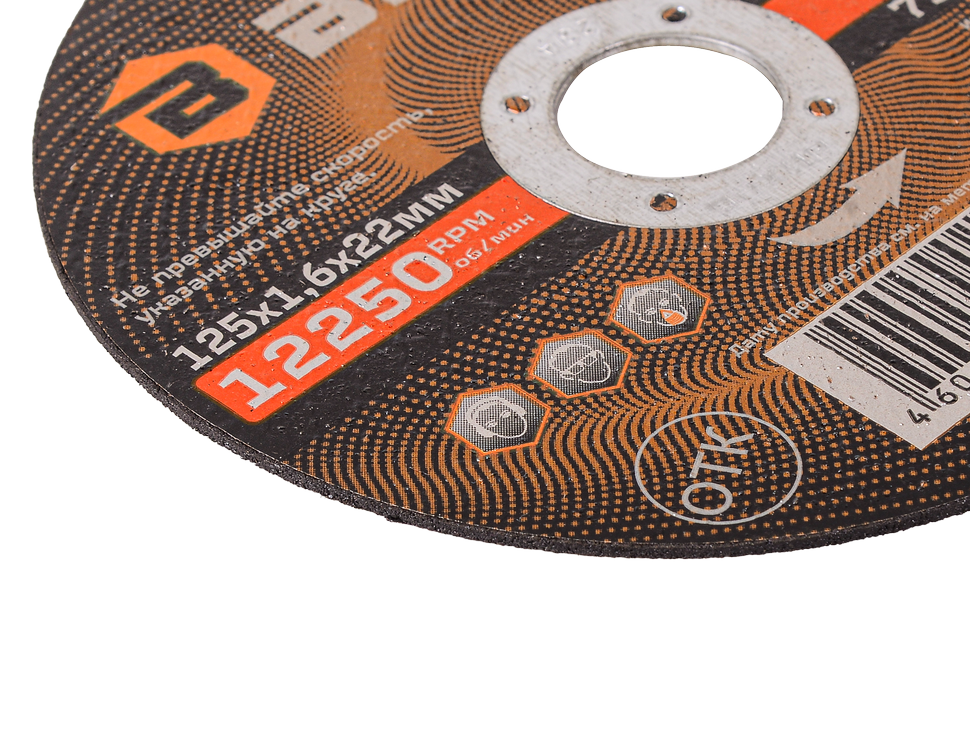 Отрезной круг имеет посадочный диаметр 22 мм и диаметр диска 125 мм. Толщина круга составляет 1,6 мм. Максимальная скорость: до 12 250 об/мин. Отрезной круг обеспечивает быструю и чистую резку металла без заусенцев и брака. Специальная конструкция круга обеспечивает надежное сцепление с инструментом и предотвращает разрушение диска.