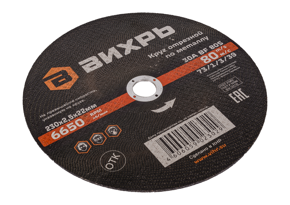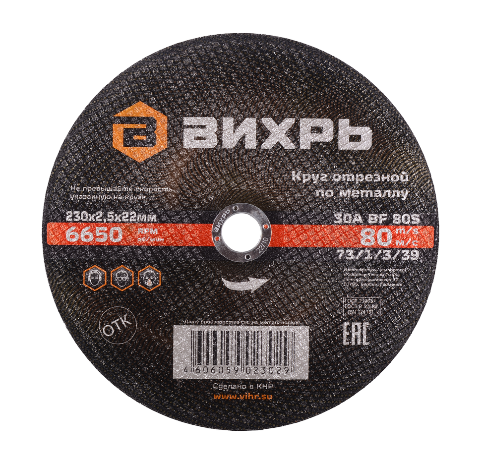Круг отрезной по металлу ВИХРЬ 230х2,5х22 мм предназначен для использования в углошлифовальных машинах при резке таких материалов как сталь, чугун, нержавеющая сталь и другие.