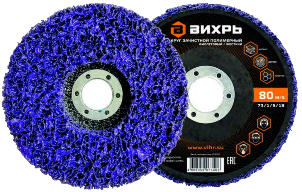 Круг зачистной полимерный 125мм, фиолетовый/жесткий (коралловый) Вихрь создан для удаления загрязнений, ржавчины, лакокрасочных покрытий без "среза" основного материала обработки. Коралловый диск эффективно счищает поверхность без повреждений, срезов поверхности, добиваясь идеальной подготовки перед покраской, грунтовкой, сваркой.