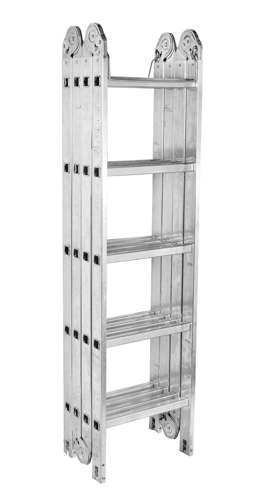 Четырехсекционная алюминиевая многофункциональная лестница-трансформер ВИХРЬ ЛТА 4х5 - это удобный и надежный инструмент для работы на высоте. Она состоит из четырех секций, которые можно свободно раскладывать и складывать в зависимости от задачи. Лестница-трансформер может использоваться как: