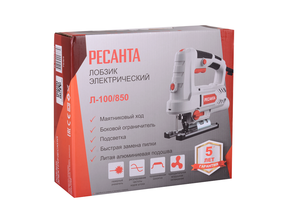 Ресанта Л-100/850 – электролобзик мощностью 850 Вт с глубиной реза 100 мм для дерева и 10 мм для металла.