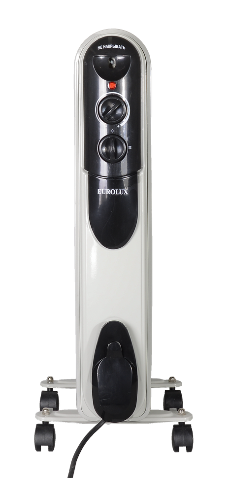 Eurolux ОМПТ-EU-7Н - модель 7-секционного масляного обогревателя предназначена для комфортного обогрева помещения до 20 м2, а также может быть использована в качестве дополнительного источника тепла на более просторных площадях. Прибор функционирует посредством нагрева до высокой температуры минерального масла, залитого внутрь корпуса. Нагревательный элемент – ТЭН. Мощность этого масляного обогревателя составляет 1.5 кВт. При этом он может работать в трёх режимах нагрева: 1 – 600 Вт, 2 – 900 Вт и 3 – 1500 Вт. Прибор работает под управлением термостата.