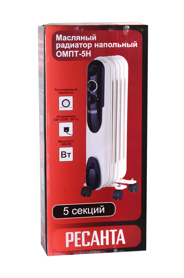 Масляный радиатор Ресанта ОМПТ-5Н – компактное, но эффективное устройство для обогрева помещения площадью до 15 кв.м. Он поможет пережить в комфорте межсезонье, а также станет полноценным источником тепла как жилого, так и нежилого помещения. Надежная, проверенная временем технология, защита от перегрева и эргономичность делают его популярным и обоснованным выбором.