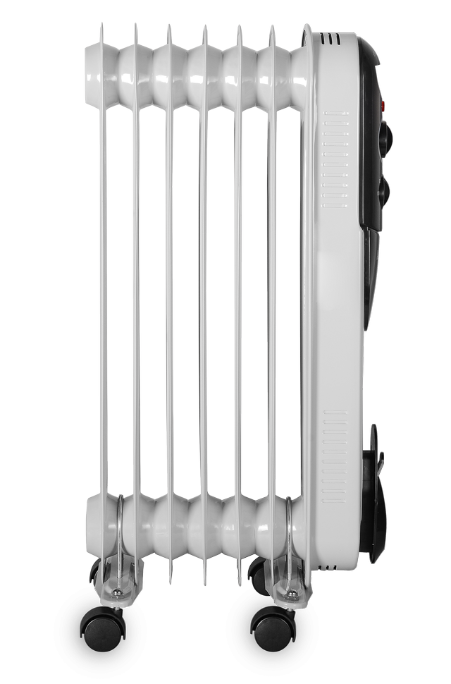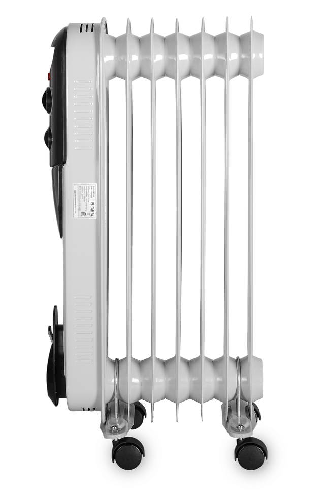 Минеральное масло в герметичном металлическом корпусе радиатора подогревается встроенными тэнами мощностью 600 и 900 Вт, которые можно включать по отдельности или вместе. Максимальная тепловая мощность масляного радиатора – 1500 Вт. Прибор быстро выходит на рабочую температуру, а 7 секций обеспечивают максимальную площадь для конвективного теплообмена с холодным воздухом. На панели управления расположены регуляторы режима работы и термостата для задания комфортной температуры воздуха. Высокоточный термодатчик будет автоматически ее поддерживать.