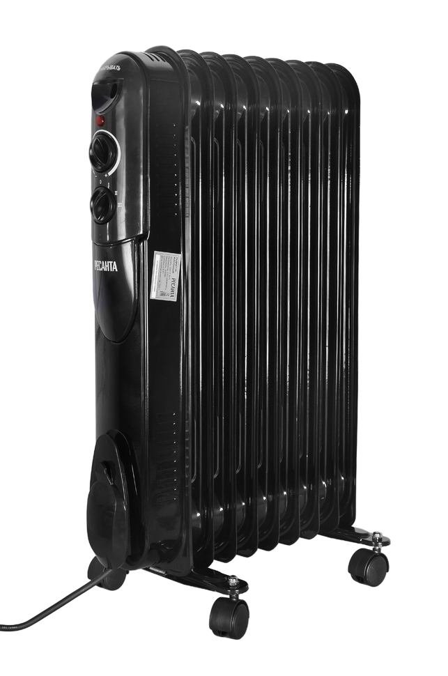 Модель РЕСАНТА ОМПТ-9НЧ окрашена в черный цвет методом напыления. Порошковая покраска металлического корпуса обеспечивает стойкое полимерное покрытие, устойчивое к нагреву. Корпус состоит из 9 секций, в качестве теплоносителя используется минеральное масло.