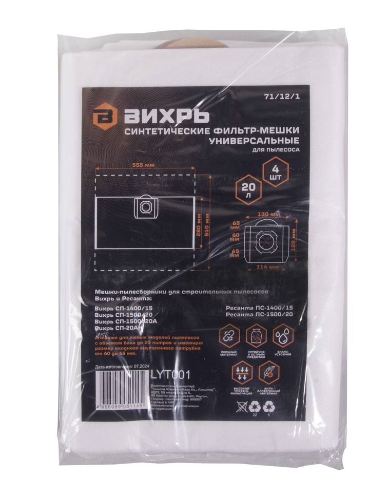 Мешки для строительного пылесоса применяются для сбора строительного мусора и пыли. Предназначены для промышленных и строительных пылесосов с объемом бака до 20 литров и имеющих размер входного внутреннего патрубка от 60 до 65 мм.