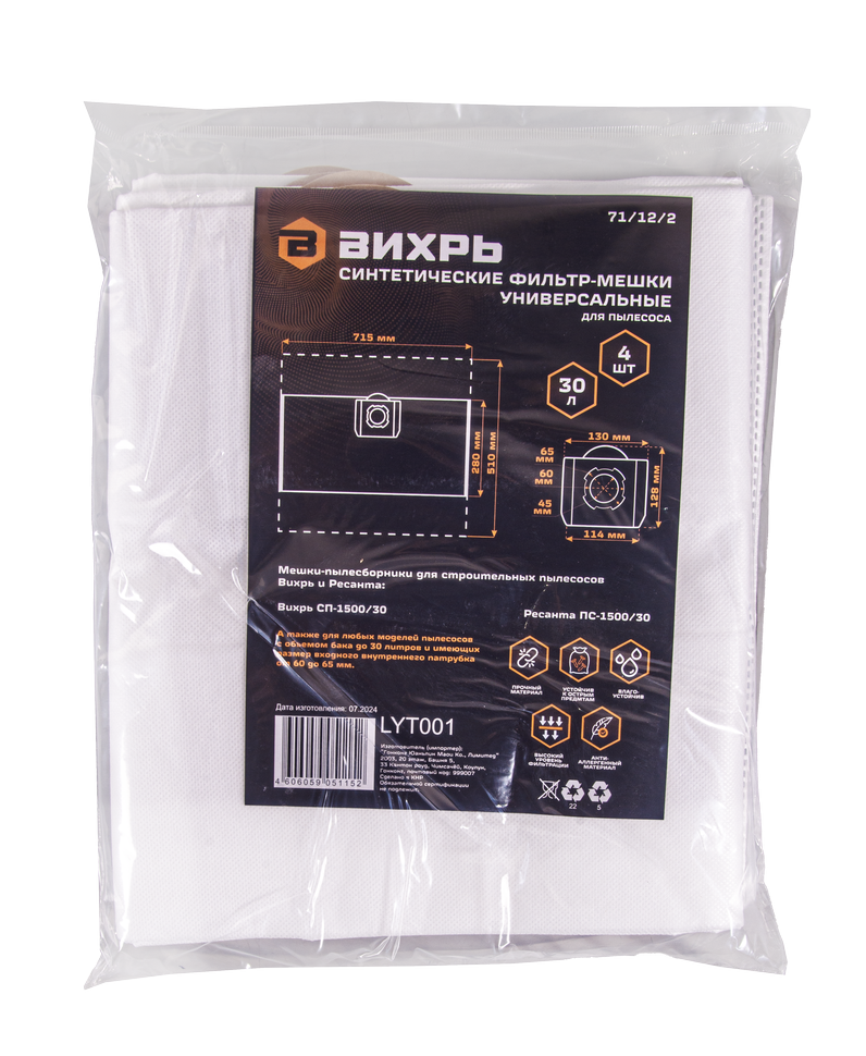 Мешки для строительного пылесоса применяются для сбора строительного мусора и пыли. Предназначены для промышленных и строительных пылесосов с объемом бака до 30 литров и имеющих размер входного внутреннего патрубка от 60 до 65 мм.