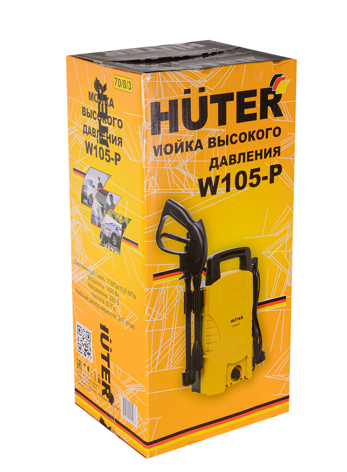 HUTER W105-Р относится к современным и функциональным мойкам высокого давления. Это мобильное устройство, которое легко переносить. Основная сфера применения определяется помывкой автомобилей или других транспортных средств, окон, террас загородного дома, спец. техники для сада и огорода, а также ковров.