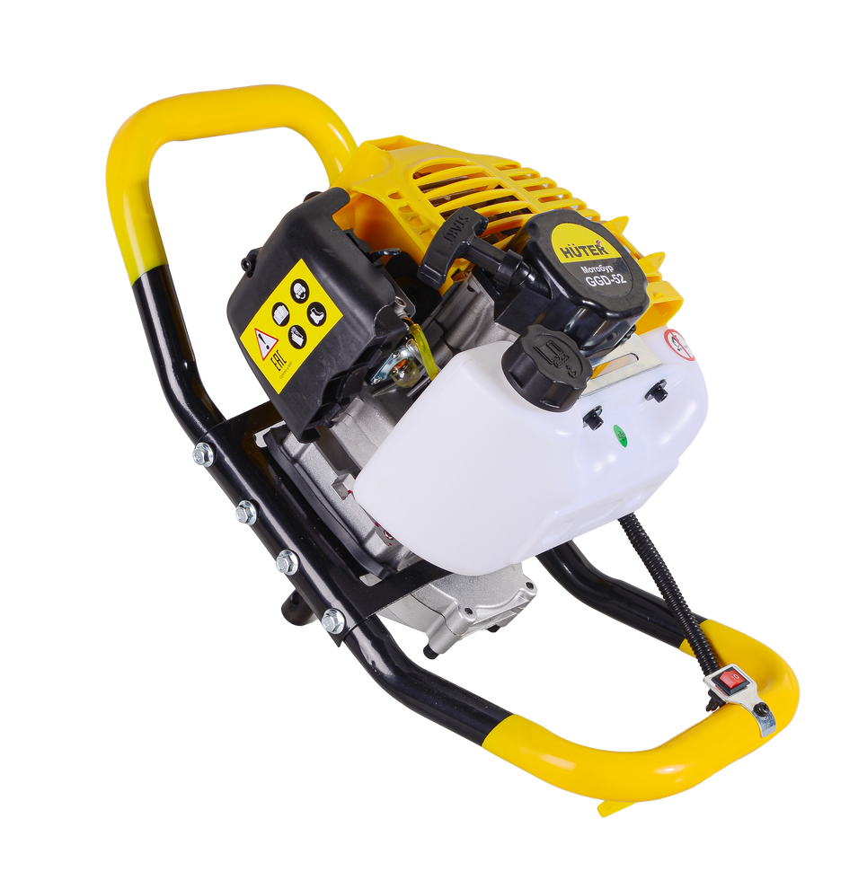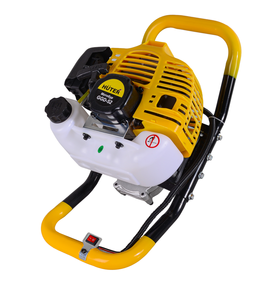 Мотобур HUTER GGD-52 предназначен для бурения углублений в земле, сверления лунок во льду, установки свайных фундаментов при строительстве. Сменные шнеки и удлинители позволяют создавать отверстия разного диаметра и глубины. Одноцилиндровый 2-тактный двигатель мощностью 2 кВт обеспечивает полную автономность работы. Система воздушного охлаждения защищает рабочие узлы от перегрева.