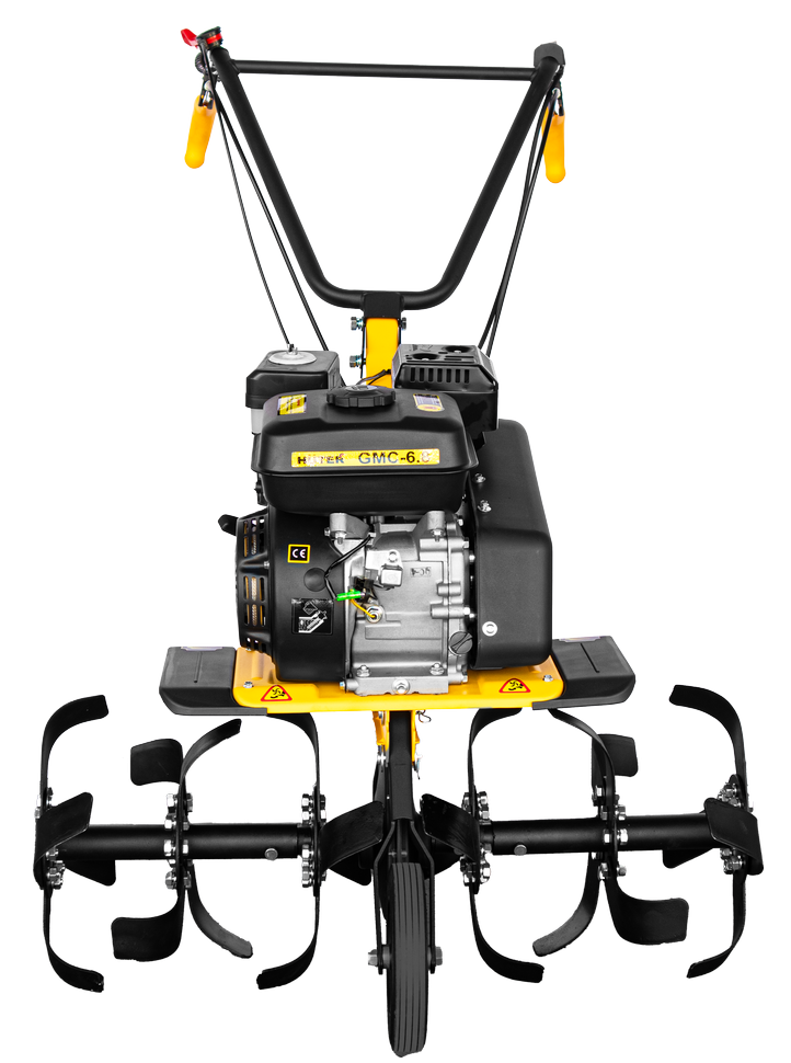 Мотокультиватор HUTER GMC-6.8 сочетает высокую производительность, маневренность и компактность. Предназначен для обработки участков средних размеров. Одноцилиндровый 4-тактный двигатель мощностью 6,8 л.с. позволяет вскапывать и рыхлить обработанную почву и целину. Бензиновый бак имеет объем 3,6 л. Благодаря экономичному расходу топлива 375 гр/кВт в час культиватор может непрерывно работать без дозаправки долгое время. Запуск производится ручным стартером. Частота вращения автоматически регулируется в зависимости от типа почвы.