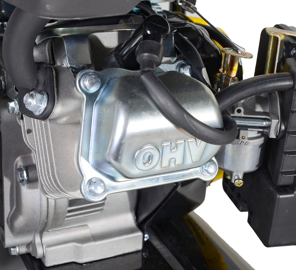 Агрегат установлен на прочной металлической раме, которая обеспечивает защиту механизма от повреждений, устойчивость конструкции и комфортность перемещения. Компактные размеры делают модель удобной для хранения, транспортировки, переноски. Топливный кран, воздушный фильтр, стартер расположены в легкодоступных местах, что упрощает эксплуатацию и техобслуживание агрегата. Водяной насос работает на бензине АИ-92, объем топливного бака составляет 1,6 л.