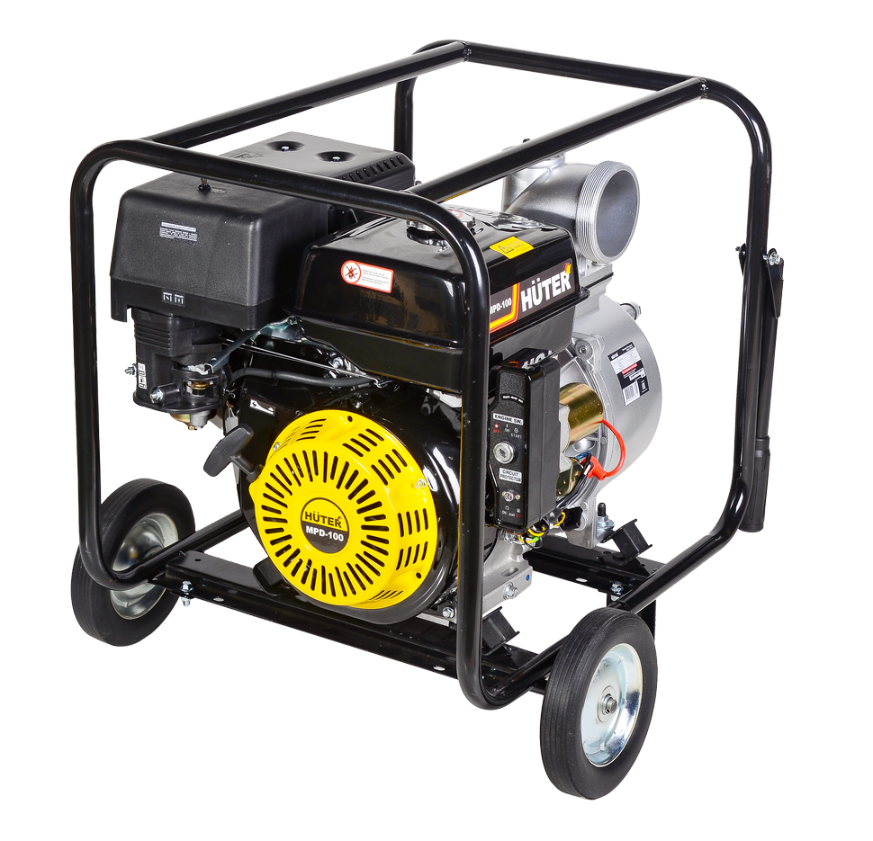 Мотопомпа HUTER MPD-100 – это компактный и производительный водяной насос, который может использоваться для перекачки чистой и грязной воды. Устройство способно перекачивать 1800 л в мин. За высокую производительность отвечает одноцилиндровый 4-тактный двигатель. Его мощность составляет 15 л. с.