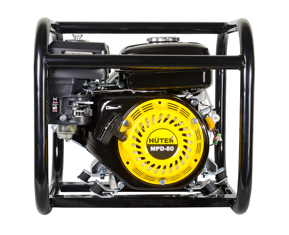 HUTER MPD-80 относится к центробежному типу насосного оборудования с функций самовсасывания. Насос предназначен для грязной воды, и может поднимать воду с глубины до 8 м и подает напор на высоту до 32 м. Входной и выходной патрубки рассчитаны на подключение рукавов 80 мм. Объем бака для топливной смеси составляет 3,6 л., что гарантирует длительную непрерывную работу мотопомпы без дозаправки.