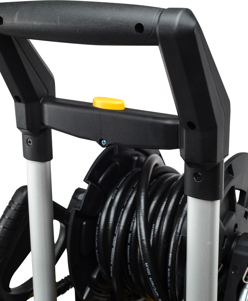 - Большие колеса и эргономичная ручка позволяют легко перемещать мойку с места на место.