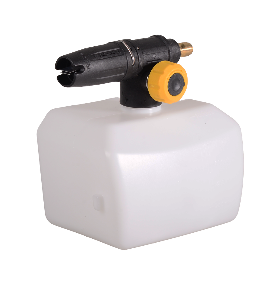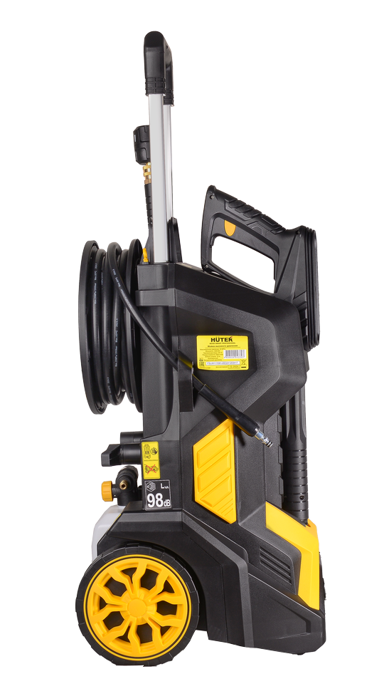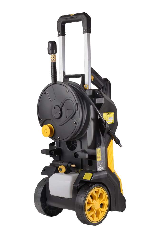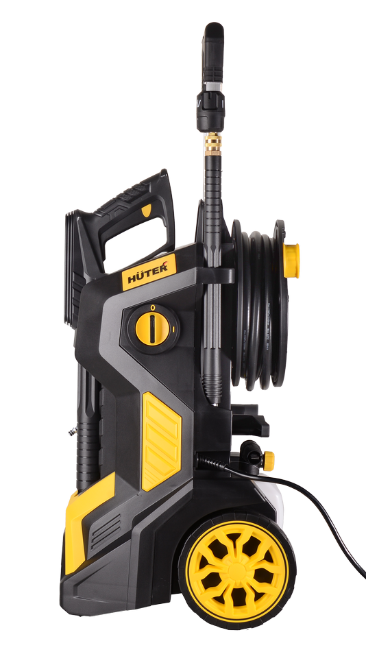 Профессиональный пеногенератор позволяет наносить моющие средства прямо на поверхность, улучшая качество очистки. Шланг длиной 10 метров обеспечивает свободу перемещения и доступ к удалённым объектам. Удобный механизм для намотки длинного шланга на барабан облегчает хранение и транспортировку оборудования. Колёса и удобная ручка делают перемещение мойки лёгким и безопасным.