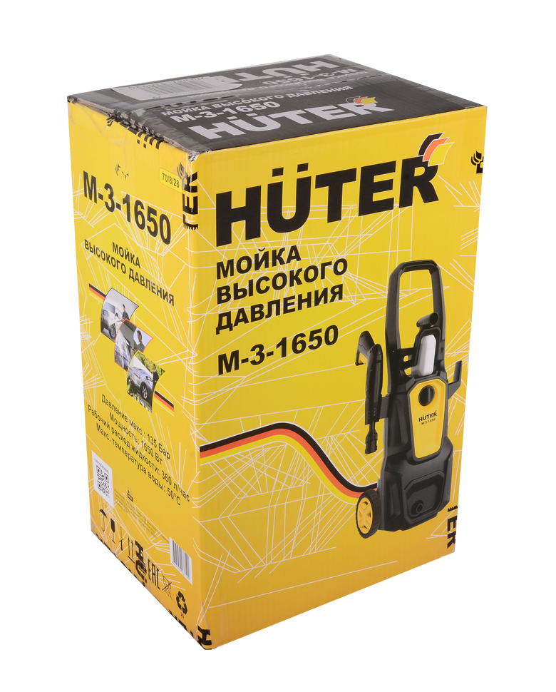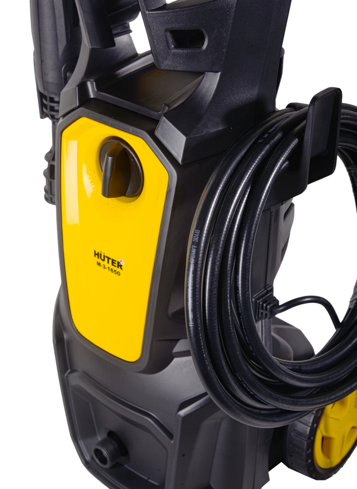 Модель Huter M-3-1650 - это компромисс между компактностью и мощностью. Малый вес и размер обеспечивает высокую мобильность. Для удобства перемещения мойка оснащена колесами.