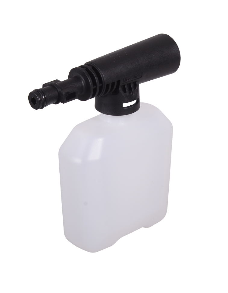 Используемая мойкой вода должна быть температурой до 50° С. Забор воды осуществляется из емкости или водопроводной сети. Рабочий расход составляет 360 л/ч. Очистительный фильтр не пропускает загрязнения и примеси, обеспечивая длительный срок службы агрегата. Бытовой пеногенератор позволяет обработать поверхности активной пеной перед мытьем. Бак для моющего средства имеет объем 250 мл. В сочетании с пенной насадкой это значительно повышает качество мытья.
