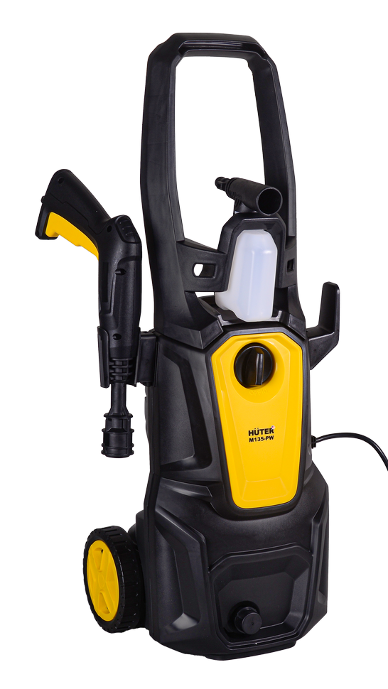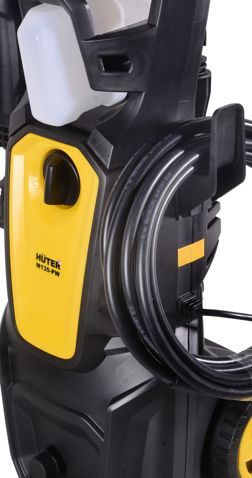 Мойка HUTER M135-PW снабжена шлангом высокого давления длиной 5 м. Он не снижает напор воды, эффективен для фасадов зданий, высоких ограждений. Агрегат работает от однофазной сети. Кабель длиной 5 м удобен для подключения. Емкость для моющего средства объемом 250 мл позволяет создавать пену для мытья загрязненных поверхностей. Пеногенератор бытовой. Колеса и ручка обеспечивают транспортировку по участку. На корпусе имеется держатель для пистолета и специальное место для наматывания шланга высокого давления.