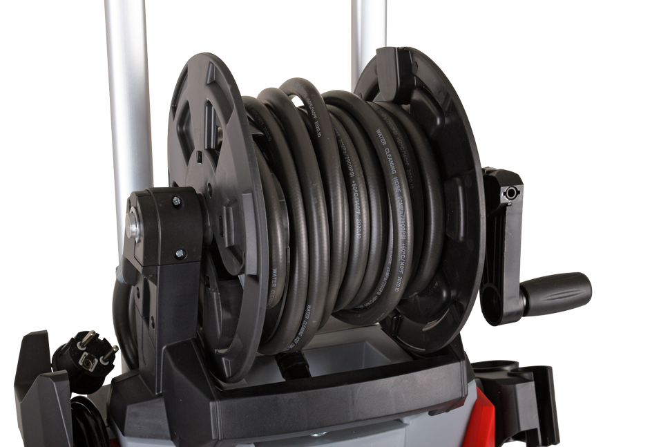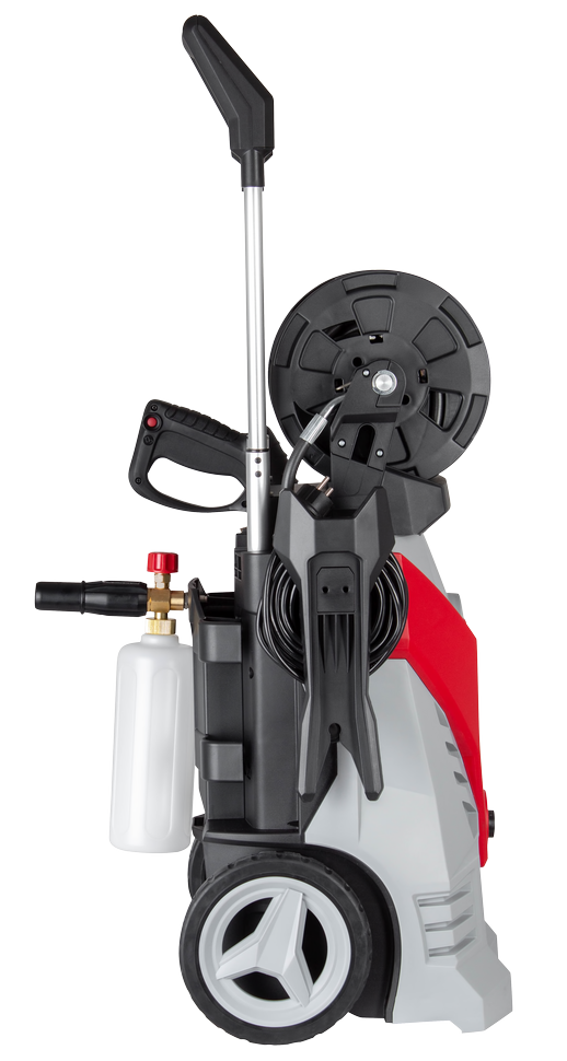 Производительность - 450 л/ч, максимальное давление - 220 бар; технические параметры позволяют применять мойку для удаления самых сложных загрязнений. Профессиональный пеногенератор создаёт густую пену, обеспечивающую лёгкое и быстрое очищение поверхности. Вода набирается из резервуара либо водопровода через шланг, на пистолете-распылителе имеется защита от случайного запуска. С помощью фильтра происходит очищение воды, максимальная температура которой - 50 °С. Длинный шланг позволяет работать на большой площади, не перемещая технику, по окончании эксплуатации наматывается на барабан(активный). Асинхронный двигатель оснащён системой водяного охлаждения, предотвращающей перегрев, что способствует долгому сроку службы.