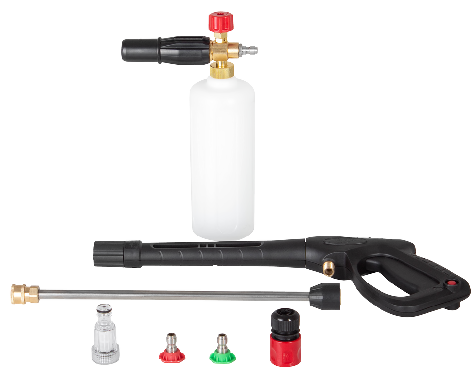 Профессиональный пеногенератор создаёт очень густую и плотную пену, а длинный шланг высокого давления позволяет мыть автомобиль с обеих сторон, не передвигая сам аппарат, что значительно упрощает и ускоряет работу.