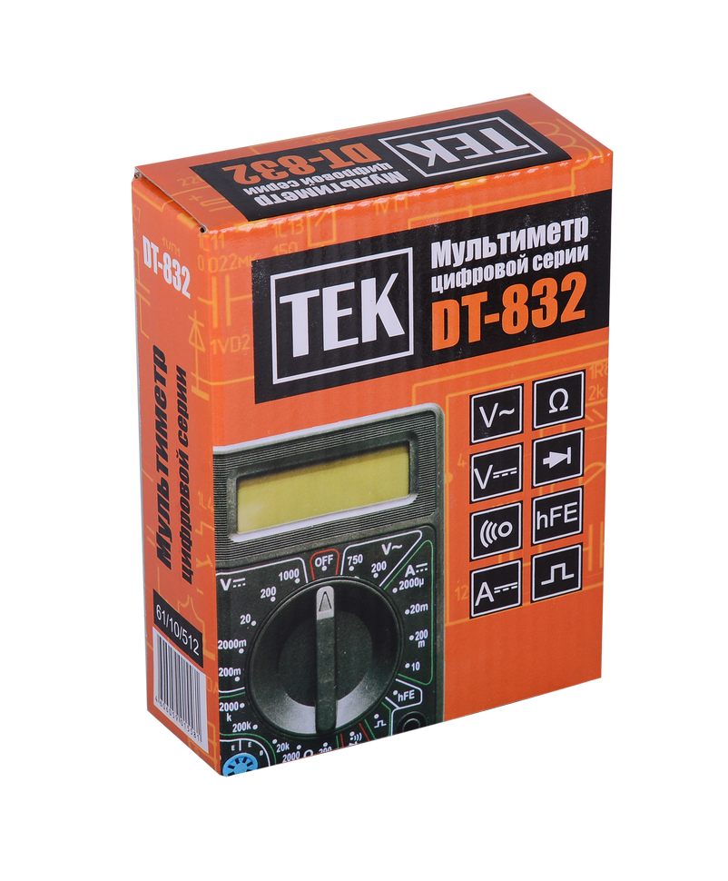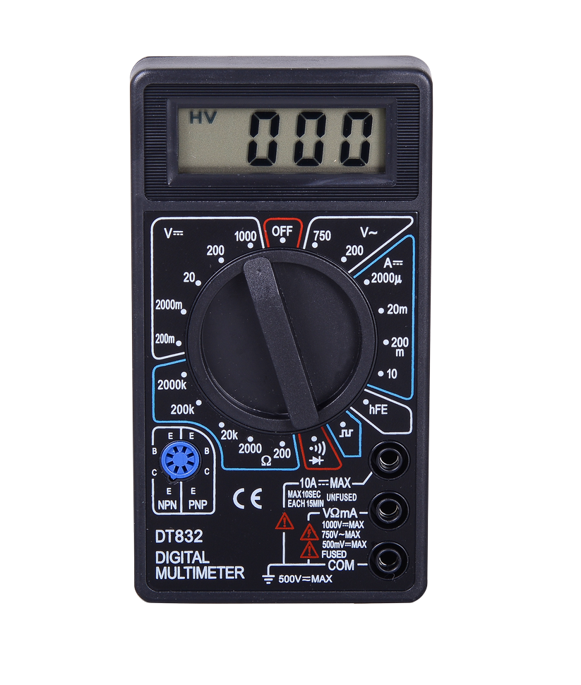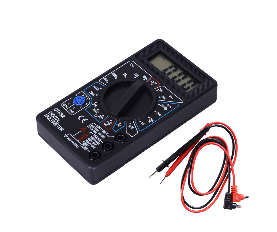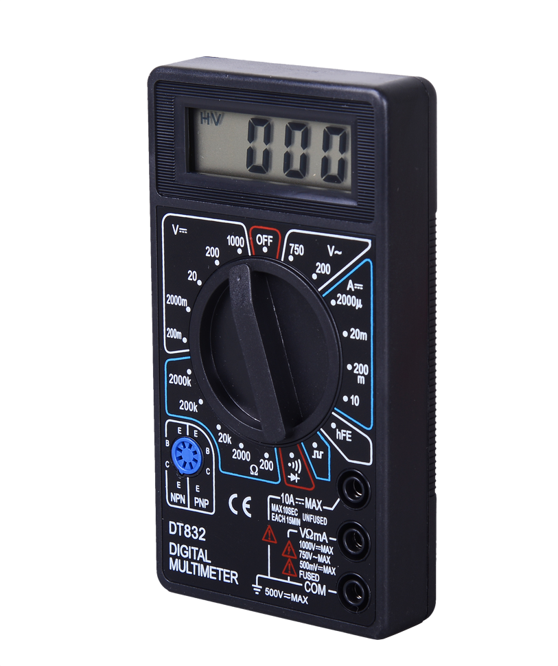 Компактный, 3 1/2 - разрядный мультиметр DT832 предназначен для измерения постоянного и переменного напряжения, постоянного тока, сопротивления, проверки диодов, транзисторов. Метод измерений - АЦП двойного интегрирования с автоматической коррекцией нуля, автоматическим определением полярности и индикацией перегрузки. Полная защита от перегрузок. Предназначен для применения в полевых условиях, лабораториях, мастерских и домашнем хозяйстве.