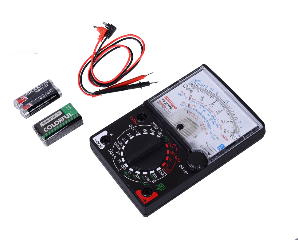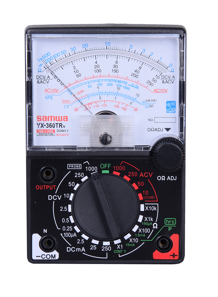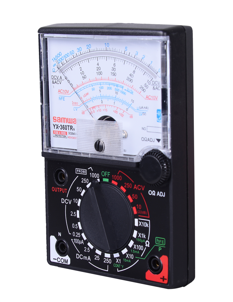 Компактный, износостойкий мультиметр YX360TRN со стрелочной индикацией предназначен для измерения постоянного и переменного напряжения, постоянного и переменного тока, сопротивления, проверки диодов, транзисторов. Устройство имеет встроенную защиту от перегрузки и перенапряжения. Предназначен для применения в полевых условиях, лабораториях, мастерских и домашнем хозяйстве.