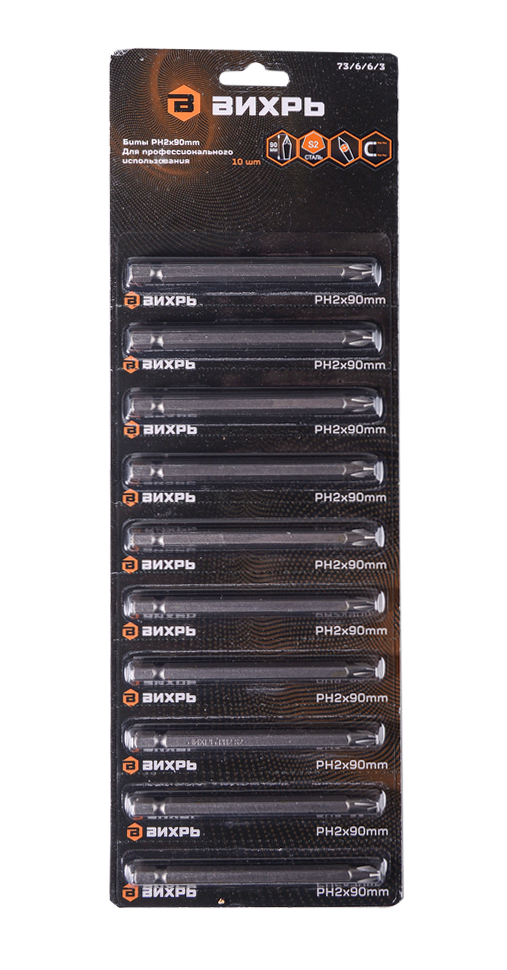 Набор бит PH2 90 мм (10 штук) от производителя Вихрь предназначен для работы с различными видами крепежных элементов.