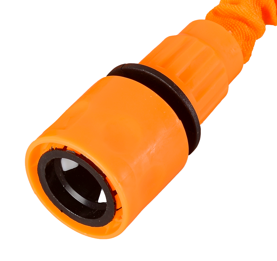 Шланг имеет специальную конструкцию, которая позволяет ему расширяться до 3 раз своей первоначальной длины при подаче воды и сжиматься обратно при ее отключении. Это делает его очень удобным в использовании и позволяет экономить место при хранении.