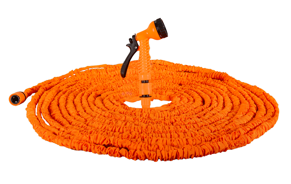 Шланг имеет специальную конструкцию, которая позволяет ему расширяться до 3 раз своей первоначальной длины при подаче воды и сжиматься обратно при ее отключении. Это делает его очень удобным в использовании и позволяет экономить место при хранении.