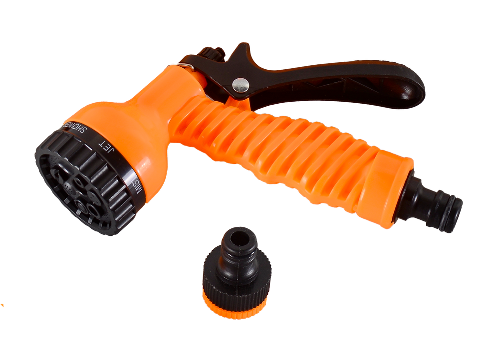 Набор для полива оснащен пистолетом-распылителем с 7 режимами, который позволяют выбрать нужный режим полива в зависимости от потребностей растений. Кроме того, он имеет быстросъемные соединители и адаптер-переходник для удобства подключения.