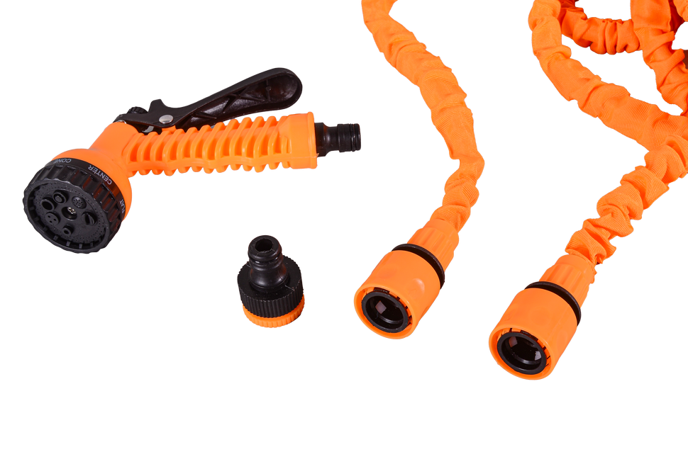 Шланг имеет специальную конструкцию, которая позволяет ему расширяться до 3 раз своей первоначальной длины при подаче воды и сжиматься обратно при ее отключении. Это делает его очень удобным в использовании и позволяет экономить место при хранении.