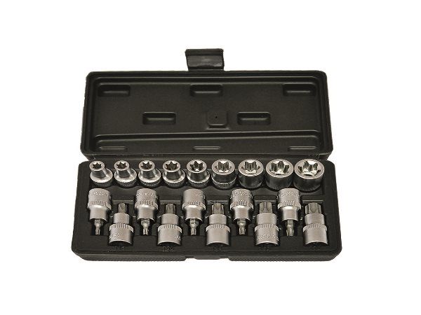 Набор головок и вставок TORX 1/2" (E10-E24, T20-T70) CrV БМ предназначен для выполнения монтажных и демонтажных работ.Благодаря соответствию высоким стандартам качества, головка может быть использована как на бытовом уровне, так в профессиональной сфере.Торцевая головка изготовлена из высококачественной хром-ванадиевой стали CR-V.Металлические части изготовлены методом горячей ковки, что придаёт им высокую прочность и долговечность.- Размер E10,Е11,Е12,Е14,Е16,Е18,E20,E22,E24,T20,T25,T27,T30,T40,T45,T50,T55,T60,T70;- Подходит для работы с гайковертом;- Кейс для хранения и транспортировки;Сменная торцевая головка покрыта прочным хромированным покрытием, которое защищает инструмент от воздействия коррозии, делает его более износостойким и легко очищается от загрязнений.Продуманный профиль рабочей части торцевой головки смещает пятно контакта с ребра грани на её поверхность, что предотвращает повреждение болтов и гаек даже при самых высоких нагрузках.