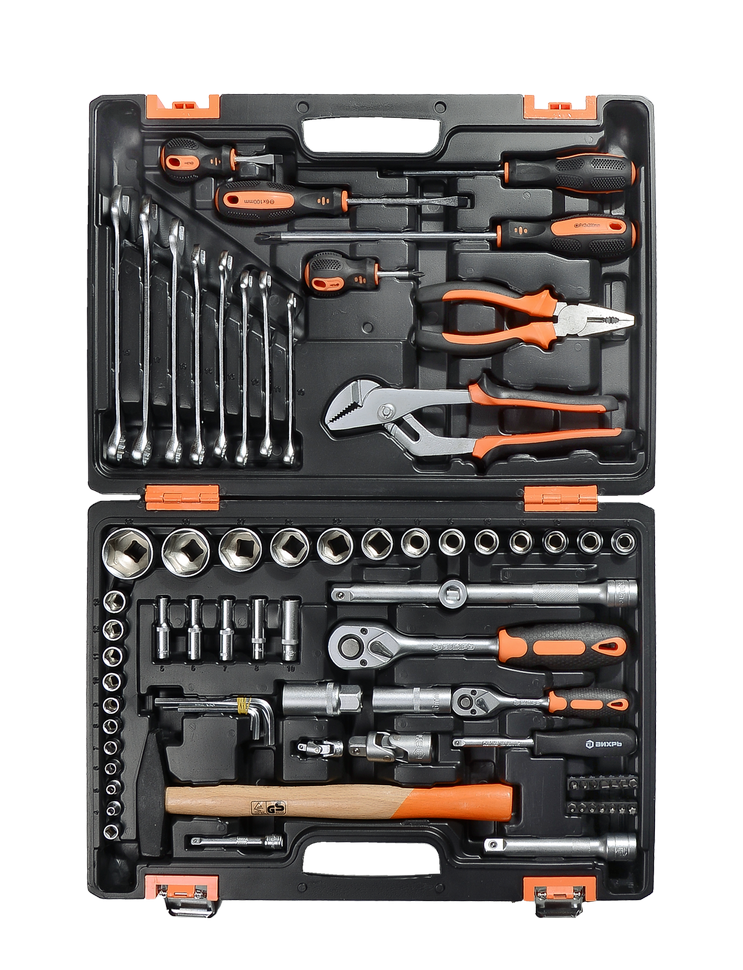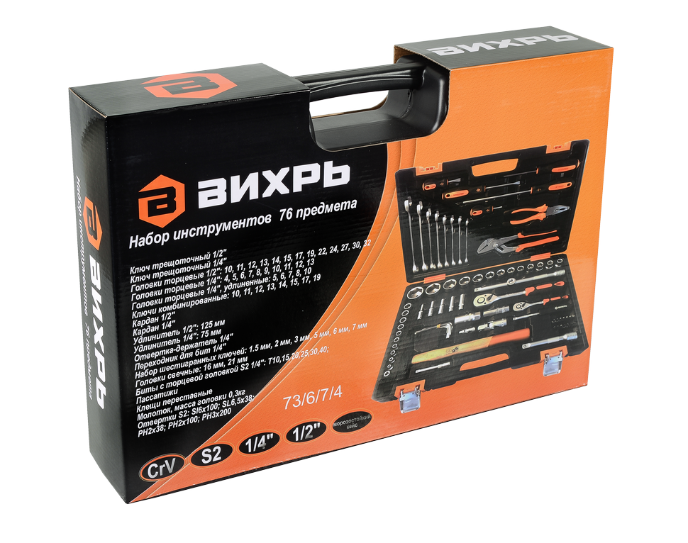 Набор инструментов, 1/2", 1/4", CrV, пластиковый кейс 76 предмета Вихрь подойдет автолюбителям и владельцам мототехники. В комплектацию входят как универсальные инструменты для мелкого ремонта по дому, так и специализированные ключи и головки для обслуживания автомобиля, мототехники, бензопил, газонокосилок и т.д. Инструмент произведен по международным стандартам и может применяться не только в быту, но и на СТО.