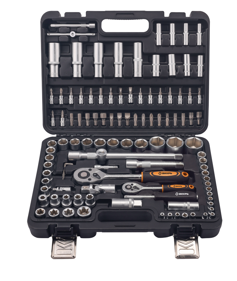 Набор инструментов 1/2", 1/4", в кейсе 108 предм Вихрь предназначен для ремонта автомобилей, мотоциклов, садовой и другой техники. Подходит как для использования на станциях технического обслуживания, так и в бытовом применении дома и на даче.