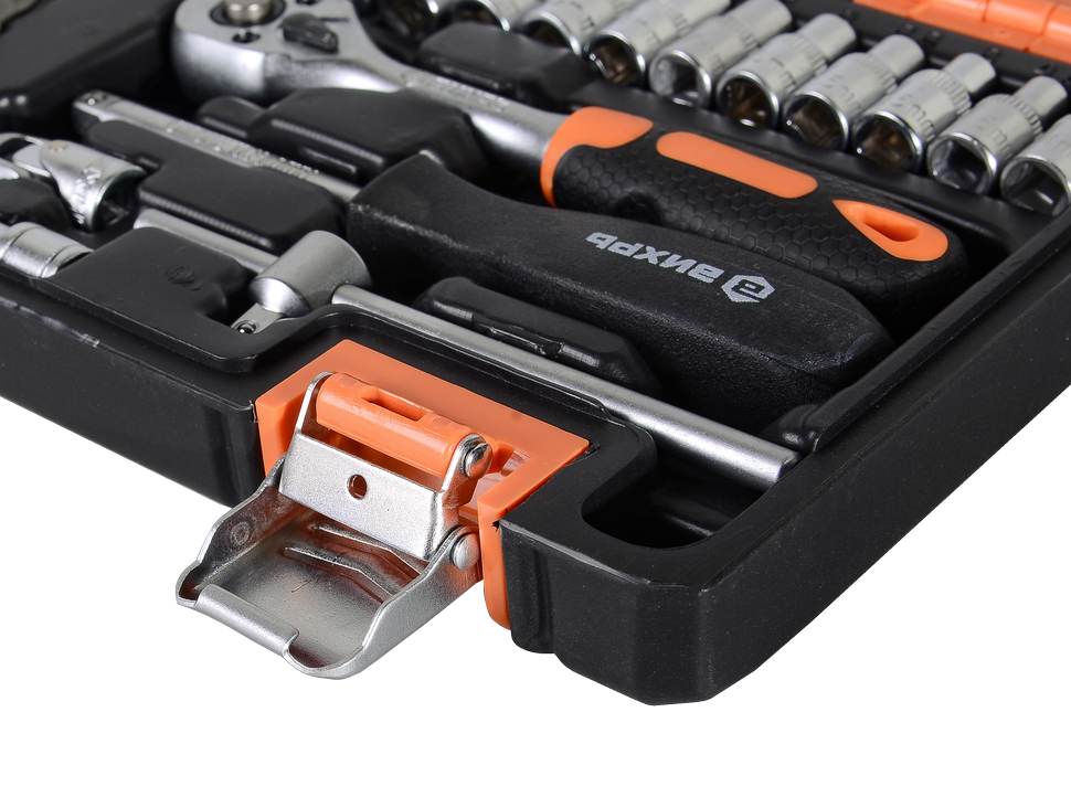 Все элементы набора уложены в специальный кейс, что позволяет быстро найти нужную насадку или инструмент. Кейс изготовлен из морозостойкого, ударопрочного пластика, оснащен надежными металлическими застежками. Малые габариты и небольшой вес делают комплект удобным для хранения и переноски.