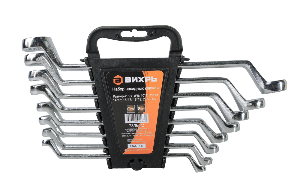 Набор накидных ключей Вихрь состоит из 8 штук с размерами от 6 до 22 мм: